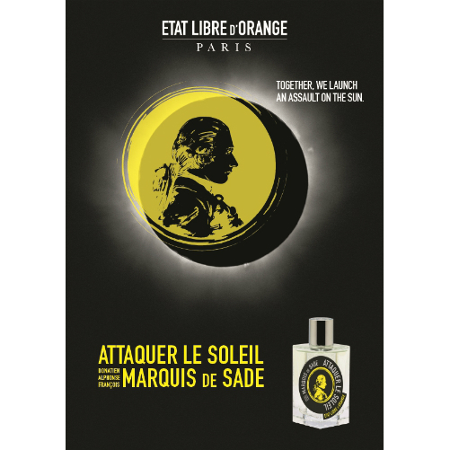 Парфюмерия Attaquer le Soleil Marquis de Sade Etat Libre d`Orange - это аромат для мужчин и женщин, принадлежит к группе ароматов цветочные. Этот аромат выпущен в 2016 году. Парфюмер: Quentin Bisch. Композиция аромата включает ноты: Лабданум. Аромат подчеркивает великолепный вкус и роскошь своего обладателя , напоминает о романтических беседах и торжественных событиях.Помните, что наш интернет-магазин доставляет исключительно оригинальную продукцию от официальных производителей.